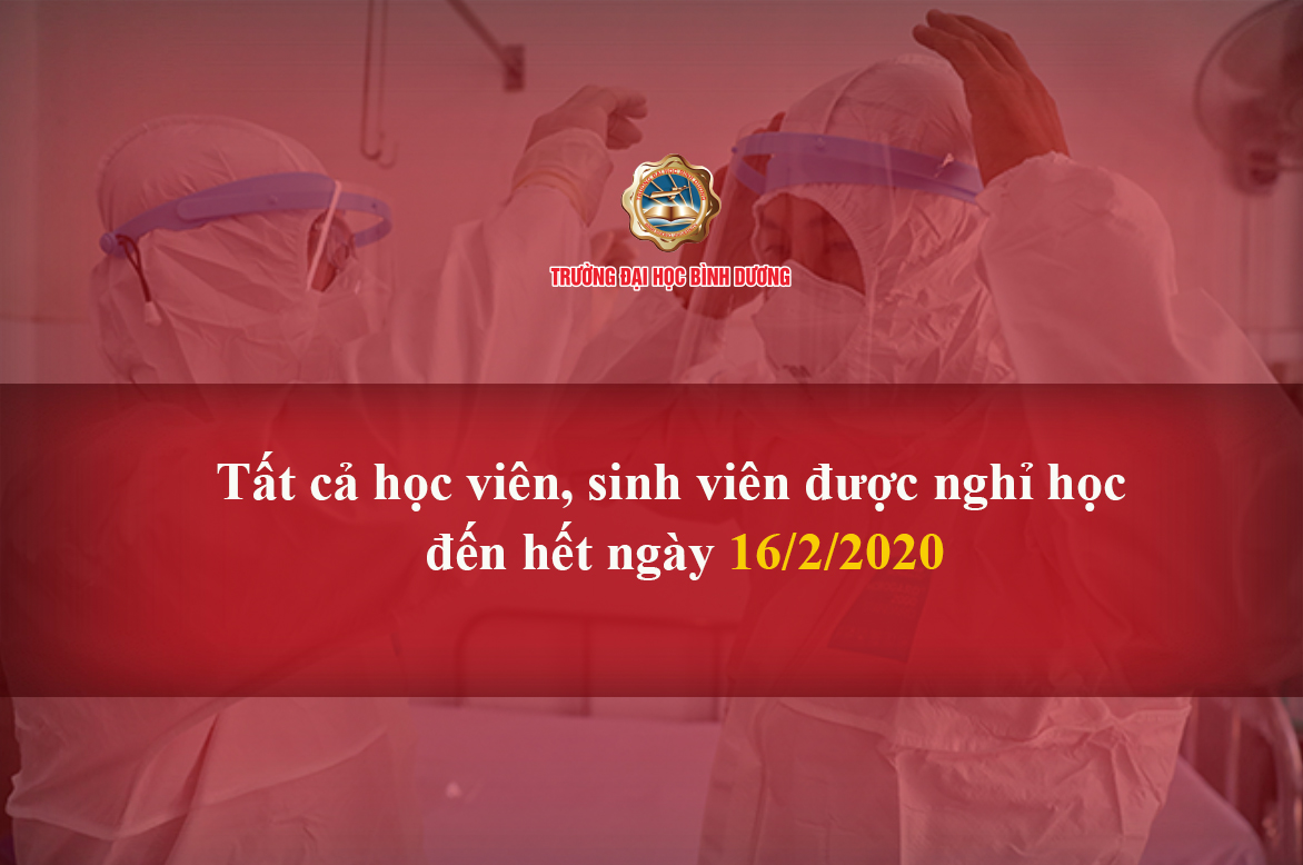 ✅Trước tình hình diễn biến phức tạp của dịch bệnh viêm đường hô hấp cấp do virus corona (nCoV) gây ra, nhằm đảm bảo phòng chống dịch corona xâm nhập, lây lan trong Nhà trường, Trường Đại học Bình Dương quyết định cho phép học viên, sinh viên Trường nghỉ tiếp đến hết ngày 16.02.2020.