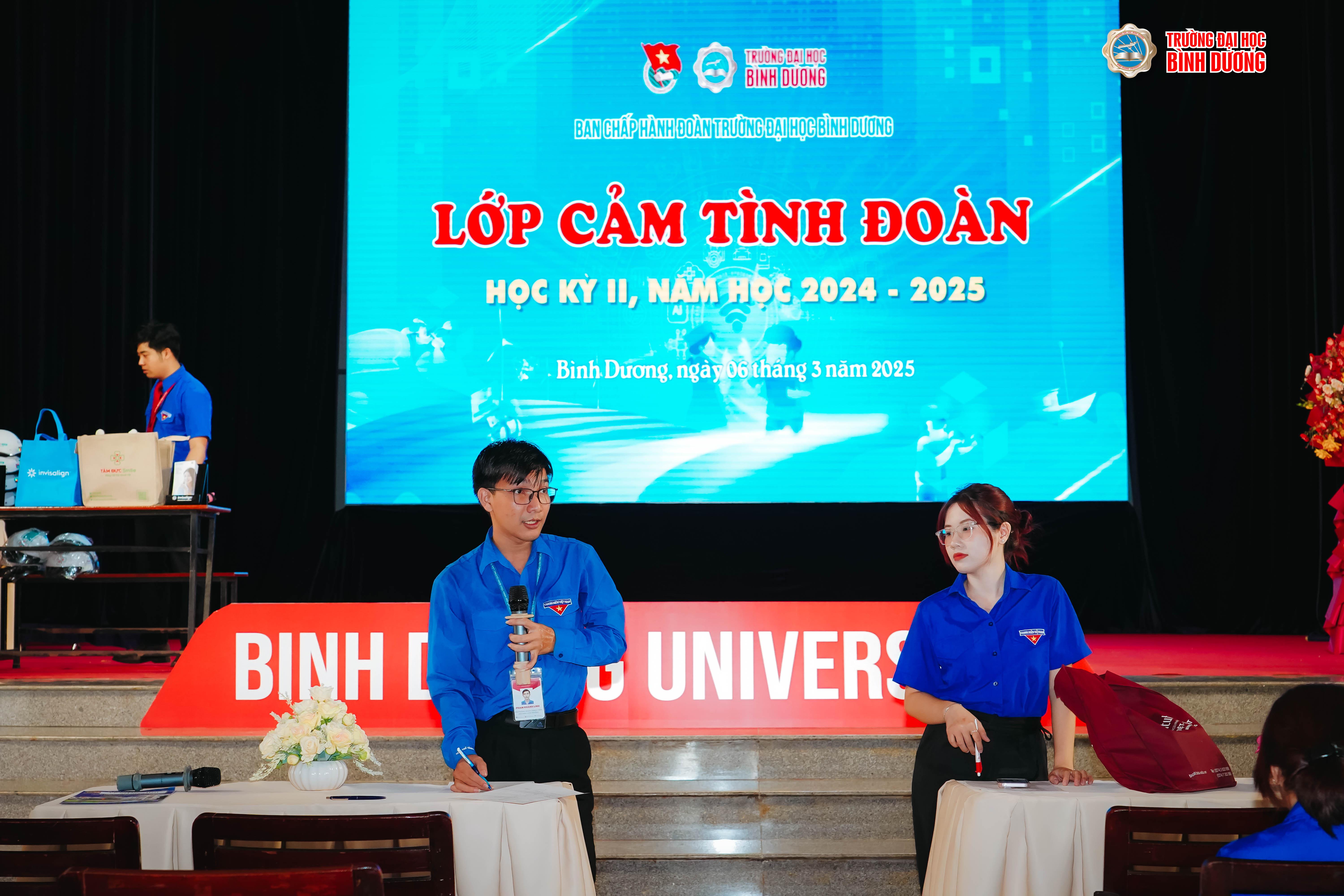Tham dự buổi lễ, có ThS. Nguyễn Ngọc Chiến – Phó Bí thư Đảng ủy, Chủ tịch Công đoàn Trường Đại học Bình Dương, Đ/c Nguyễn Thành Tài – Bí thư Đoàn Trường, Đ/c Nguyễn Tùng Lâm – Phó Bí thư Đoàn Trường, cùng các Thường trực Đoàn – Hội và hơn 100 đoàn viên, thanh niên từ các đơn vị chi đoàn.