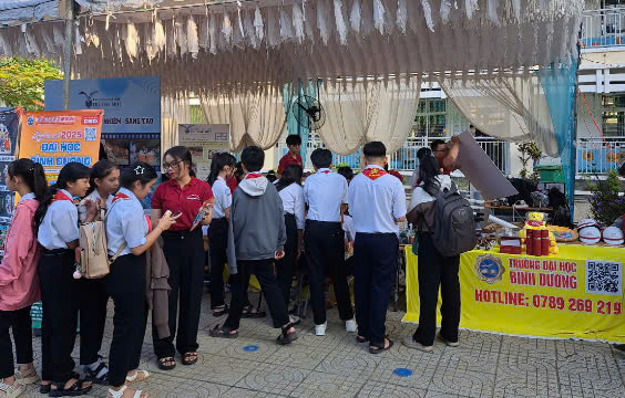 Gian hàng triển lãm Trường Đại học Bình Dương thu hút đông đảo học sinh và thầy cô giáo