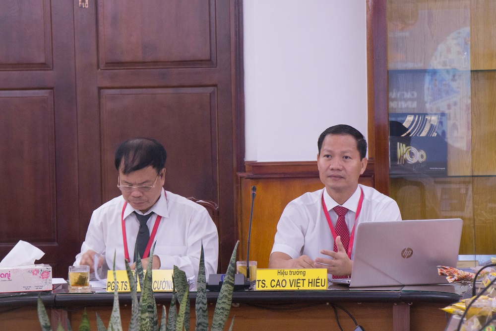 TS. Cao Việt Hiếu - Hiệu trưởng Trường Đại học Bình Dương cùng PGS.TS Lê Văn Cường - Phó Hiệu trưởng chủ trì hội thảo khoa học do khoa Kinh tế tổ chức