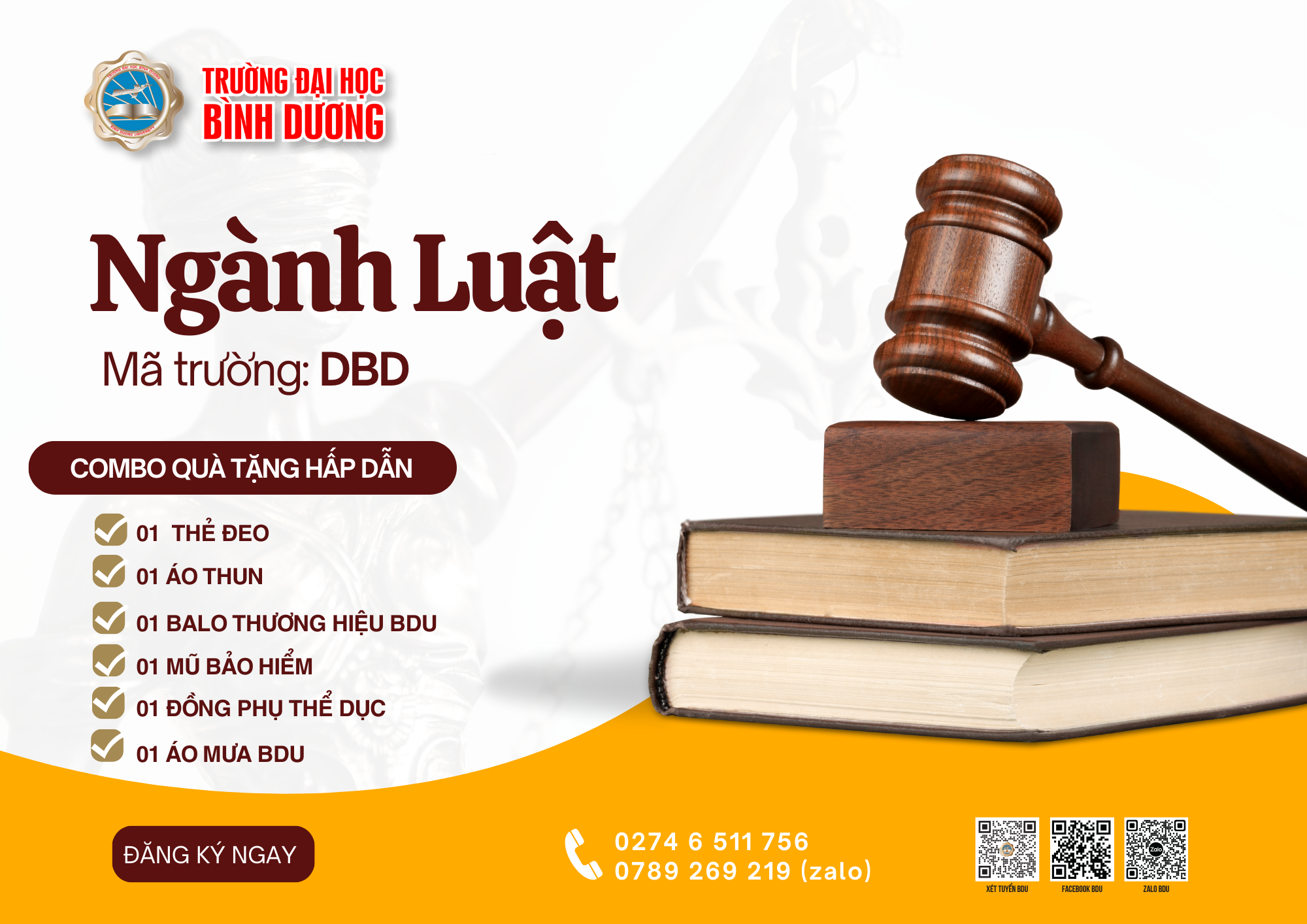 Trường Đại học Bình Dương (BDU) chính thức công bố đào tạo Cử nhân ngành Luật theo quyết định số 2003/QĐ-BGDĐT của Bộ Giáo dục & Đào tạo ban hành ngày 29/07/2024. Chương trình đào tạo chính quy tập trung 4 năm với mã ngành 7380101. Ngành Luật được thiết kế để đáp ứng nhu cầu ngày càng cao về nguồn nhân lực chất lượng trong lĩnh vực pháp lý, và tạo ra nhiều cơ hội nghề nghiệp hấp dẫn cho sinh viên.