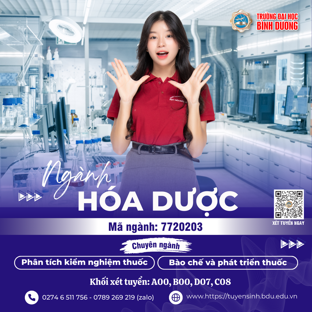 Đón đầu xu thế công nghệ và nhu cầu nguồn nhân lực trong tương lai, năm 2024, Trường Đại học Bình Dương (BDU) tuyển 2.505 chỉ tiêu vào 17 mã ngành đào tạo, trong đó Hóa dược là ngành đào tạo mới trong năm nay của nhà trường.